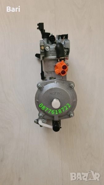 Карбураторът е предназначен за монтиране на двигатели от 5 до 8 к.с. или от 155 куб. см. до 250 куб. см. за работа на газ / метан / бензин. Монтира се на мястото на стария карбуратор и се свързва с обикновен клапан към битова бутилка. Инсталирането става лесно за няколко минути. Карбураторът е предвиден за монтаж на едноцилиндрови четиритактови двигатели с въздушно охлаждане. Подходящ е за монтаж на генератори, водни помпи, мотокултиватори и други. Благодарение на него разходът за гориво намалява драстично. Уредът е снабден с кран за източване на горивото от поплавъка, като по този начин се предотвратява задавяне на машината при неволно запалване с двата вида гориво ( бензин / газ / метан ). Задължително преди запалване смукачът се поставя на първа позиция или т. нар. " полу смукач ", след което се натиска два пъти белия бутон на изпарителя и така двигателят може да бъде запален. Работата на газ или метан е значително по-равномерна. Карбураторът е настроен за работа, но може да се нуждае от леки корекции, в зависимост от двигателя, на който се монтира. Разполагаме и с други части за мотофрези,резачки и бензинови коси.
