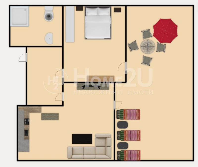 Home2U Ви представя двустаен апартамент със собствен двор във висококачествена сграда с АКТ 16. Апартаментът се намира в комплекс от 2 сгради с контрол на достъп, богато озеленяване, места за отдих и детска площадка. Апартамента e вътрешен с югоизточно изложение и е със следното функционално разпределение: входно антре, баня с тоалетна, спалня, дневна и двор с нескриваема гледка към варненското езеро.