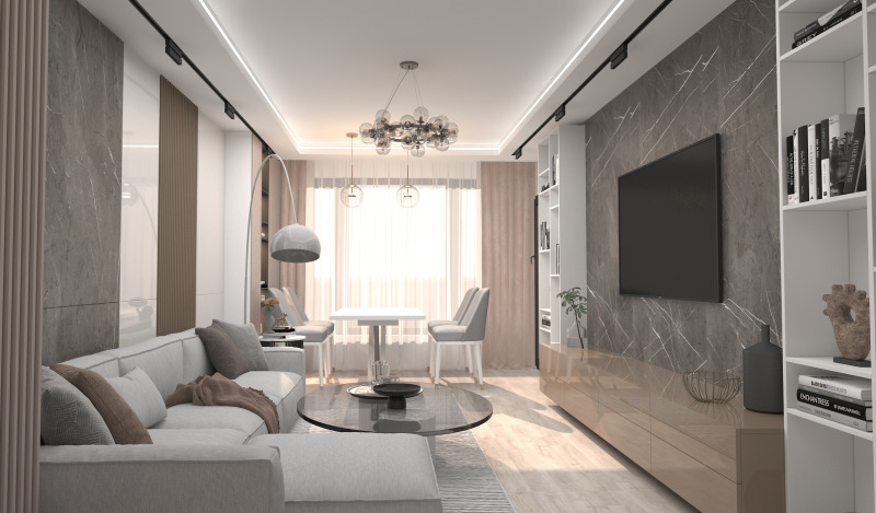 🖌️ Изработен е дизайнерски проект за довършване и обзавеждане, който дава възможност за стилна и модерна визия според най-новите интериорни тенденции.