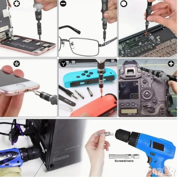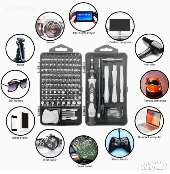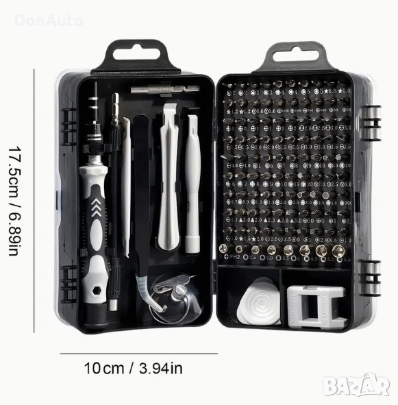Прецизен комплект отвертки 115 части– Хром-ванадиева стомана, магнитни, ергономични, противохлъзгащи, за електроника, мобилни телефони, лаптопи и часовници