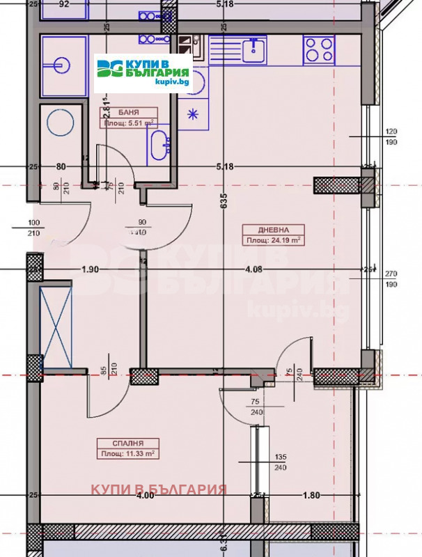 Дневна с кухненски бокс 24,20 кв.м.