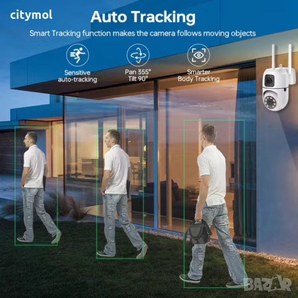 Подходяща за видео наблюдение на места с голяма площ. Чрез приложението може да се контролира ъгъла на завъртане на 355 градуса хоризонтално и 90 градуса вертикално.
