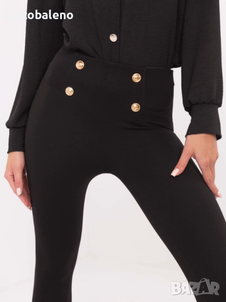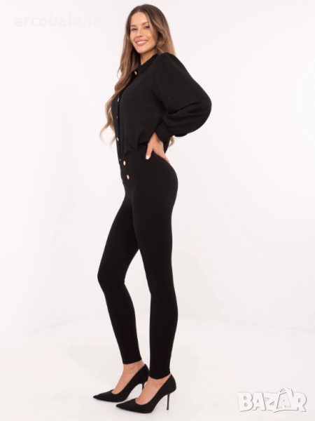 Дамски черен елегантен клин с декоративни копчета