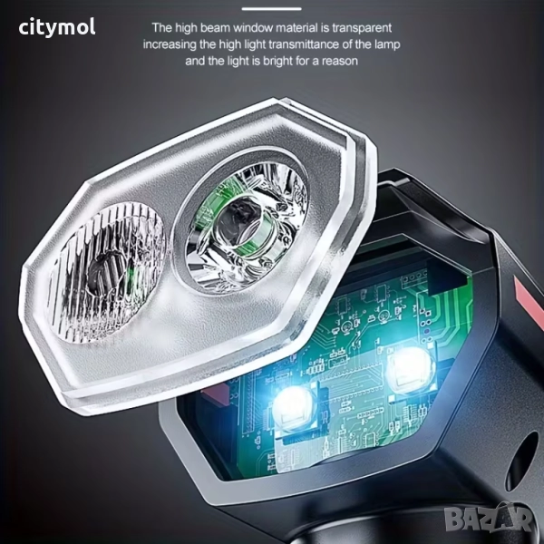 Ергономично проектиран, за издръжливост и ефективност, този фар е перфектният избор за велосипеди и скутери, като осигурява повишена видимост, комфорт и безопасност по време на пътувания.