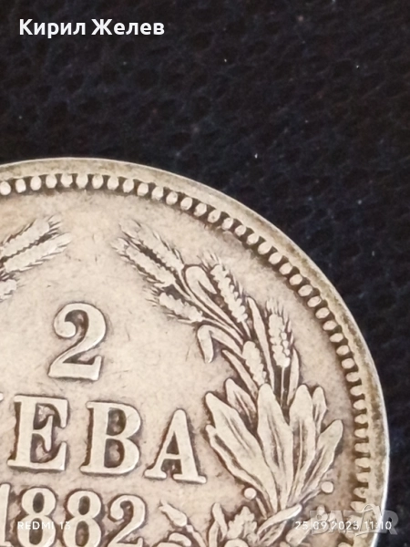 Сребърна монета 2 лева 1882г. Княжество България Александър първи 37199