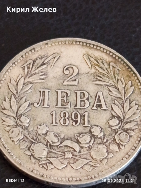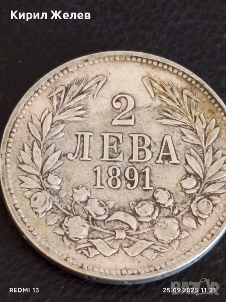 Сребърна монета 2 лева 1891г. Княжество България Княз Фердинанд първи 28198