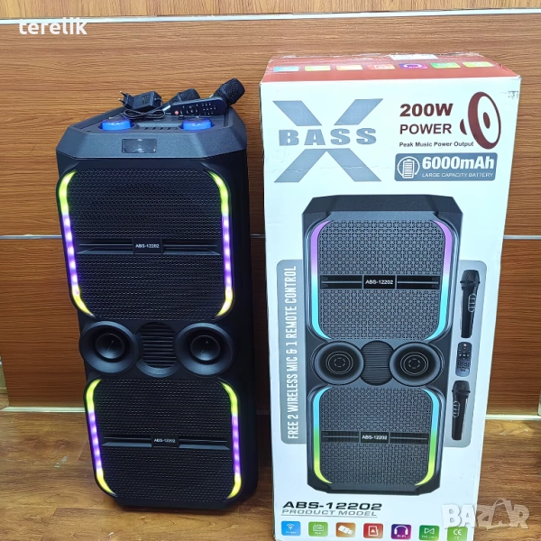 πŸ”Š ABS-12202 – 12”×2 Xbass 200W 6000mah-50Π»Π² ΠŸΡ€ΠΎΡ„Π΅ΡΠΈΠΎΠ½Π°Π»Π½Π° ΠΊΠ°Ρ€Π°ΠΎΠΊΠ΅ Ρ‚ΠΎΠ½ΠΊΠΎΠ»ΠΎΠ½Π°, Bluetooth, 2 ΠΌΠΈΠΊΡ€ΠΎΡ„ΠΎΠ½a β†’ Обява 51831232