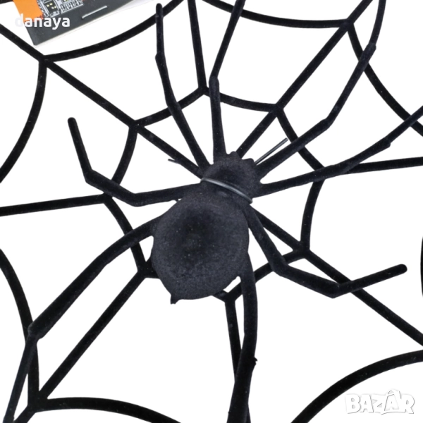 Добавете страховито излъчване към празничната атмосфера с тази реалистична Halloween украса – велурена паяжина с с голям паяк в средата. Изработена с внимание към детайла, паяжината има меко велурено покритие, а в центъра ѝ стои черен паяк за още по-ефектен и зловещ вид.