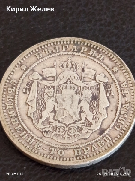 Сребърна монета 2 лева 1882г. Княжество България Александър първи 38420 → Обява 51831563