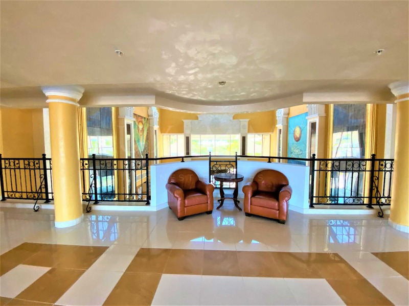 Имотът е с площ от 88 кв.м и се намира на 8-ми етаж в най-голямата и луксозна сграда на комплекса. От терасата му се разкриват превъзходни гледки към морето, плажа и водните атракции на комплекса.