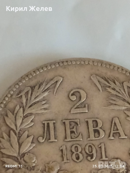 Сребърна монета 2 лева 1891г. Княжество България Княз Фердинанд първи 37577 → Обява 51831747