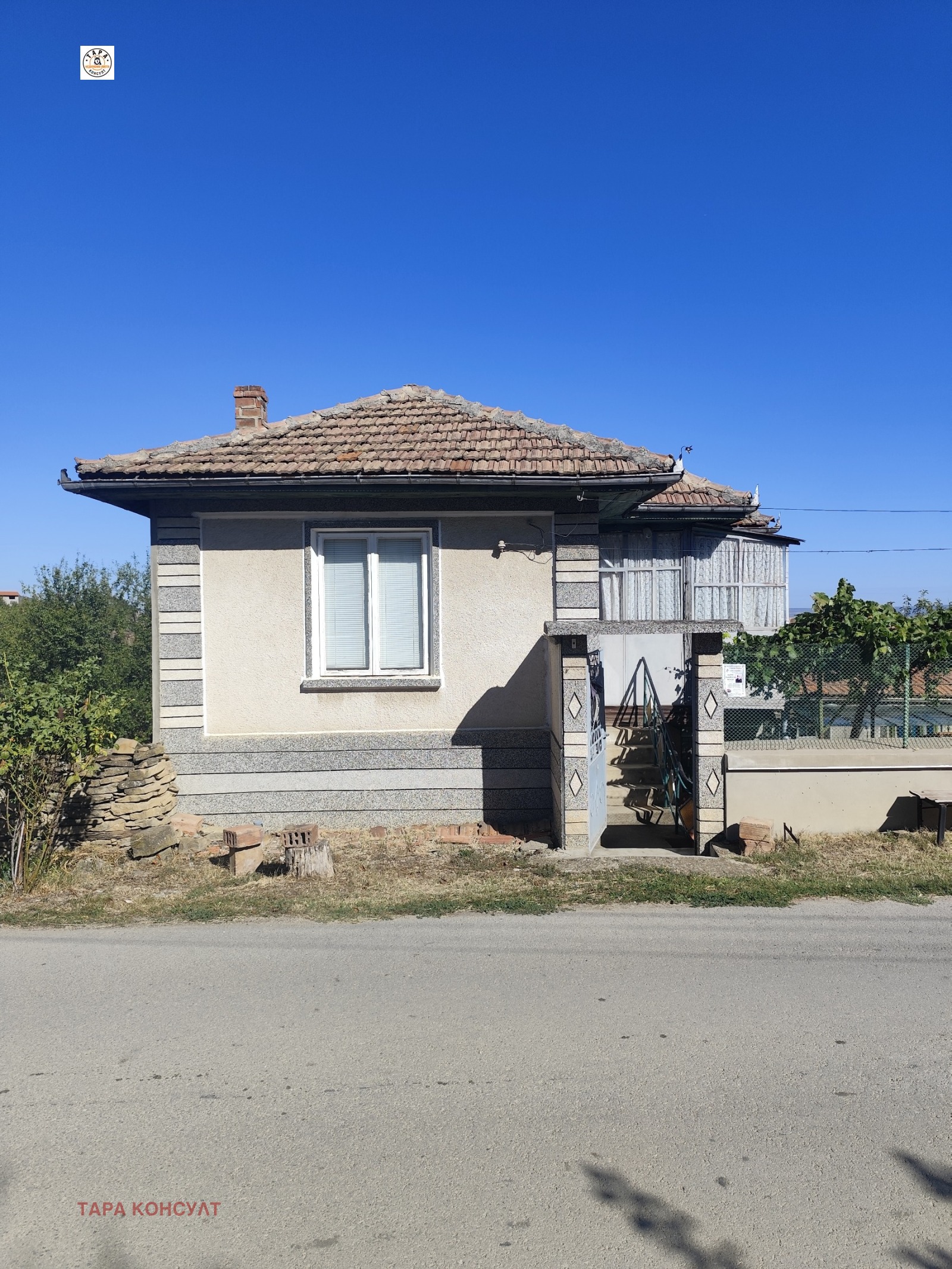 Продава здрава тухлена къща с южно изложение на асфалтиран път с удобен достъп.Състои се от отделна кухня.дневна.баня с тоалетна и голяма маза с удобен излаз към двора.На второто ниво има три самостоятелни спални.Дворо е 1100кв.м. със здрави постройки.външна баня и тоалетна.подържано лозе и масивен гараж.