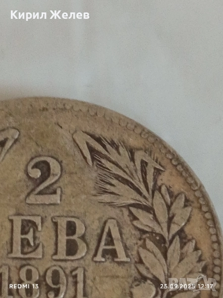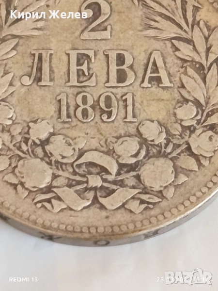 Сребърна монета 2 лева 1891г. Княжество България Княз Фердинанд първи 46246
