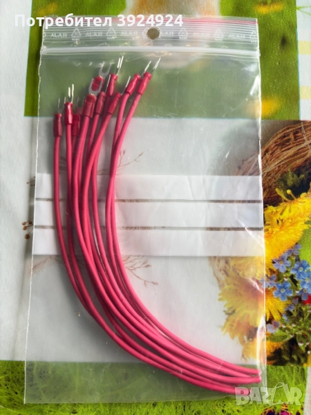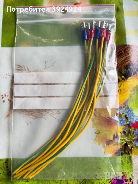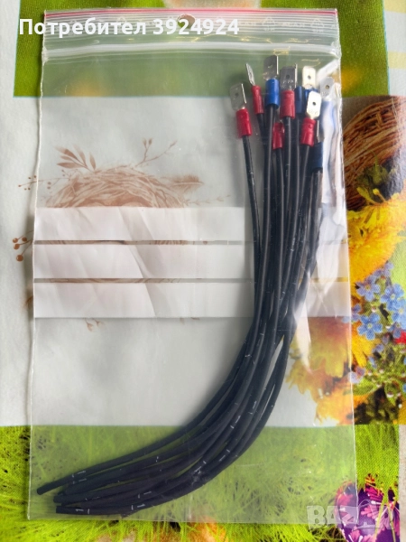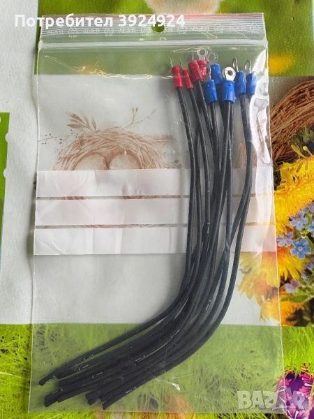Кабел 1.5mm² с изолиран кабелен накрайник тип "вилица" от едната страна,цвят червен и син,дължина 200mm,цена 0,60лв(0,31€)/брой