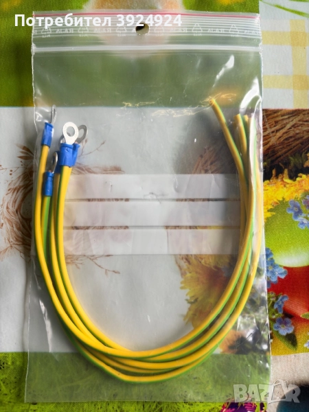 Кабел 2.5mm² с изолиран пръстеновиден накрайник от едната страна за болт 5mm,цвят жълто/зелен,дължина 300mm,цена 2лв(1,02€)/брой