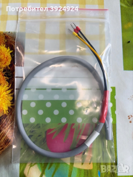 Кабел 1.5mm² с изолилана кабелна обувка от едната страна,плоска/женска/,цвят жълто/зелен,дължина 200mm,цена 0,60лв(0,31€)/брой