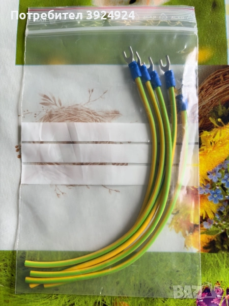 Кабел 2.5mm² с изолиран накрайник тип "вилица" от едната страна,цвят жълто/зелен,дължина 200mm,цена 1,20лв(0,61€)/брой