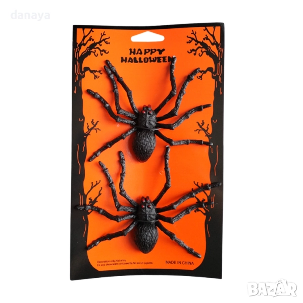 Комплектът включва 2 броя големи паяци с размери 11×13 см – достатъчно ефектни, за да уплашат гостите и да придадат мистична атмосфера на дома, офиса, училището или магазина. Подходящи са за декорация на стени, маси, прозорци, витрини и сцени, както и като част от тематични аранжировки за Halloween партита, фотосесии и забавления.