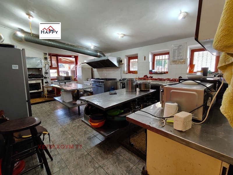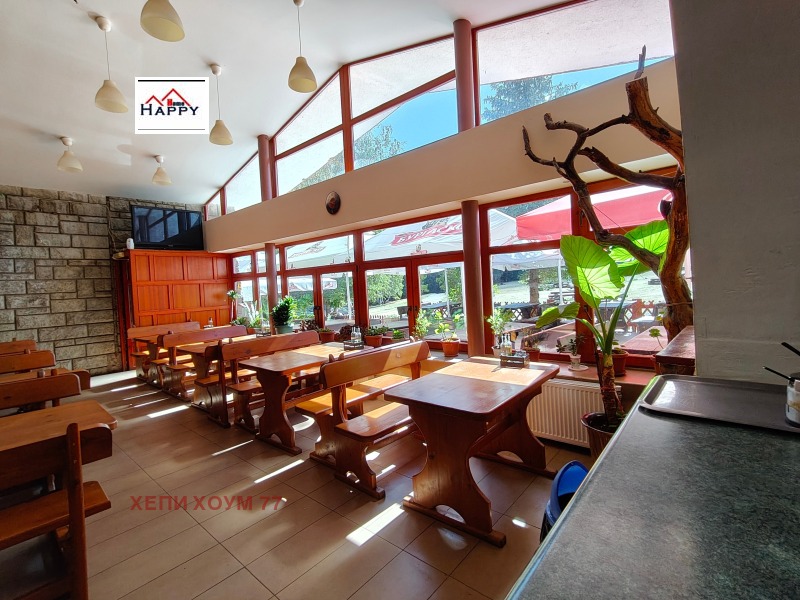 Ресторант: 68 кв.м. търговска площ на две нива със самостоятелен вход, 50 бр седящи места масивни маси /ново оборудване/, озвучаване, телевизия, оборудван бар 11 кв.м., камина на водна риза и радиатори.