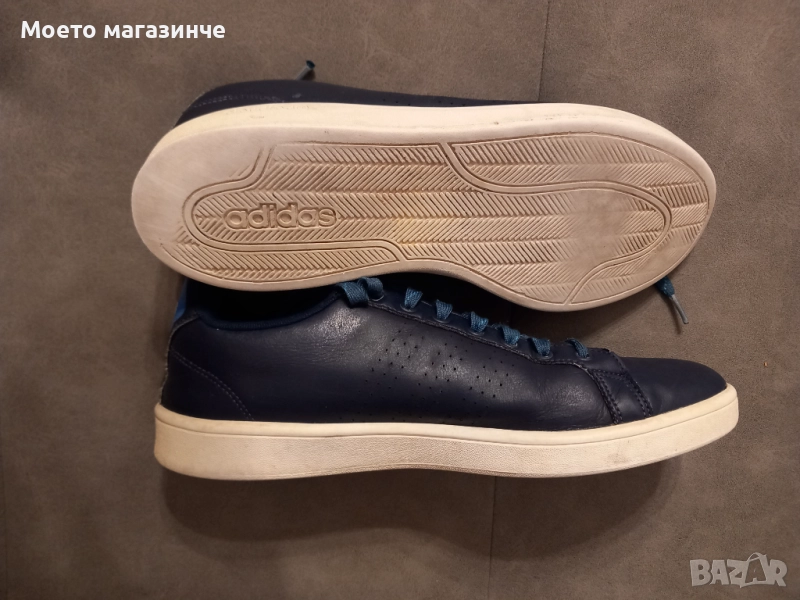 Оригинални мъжки маратонки Adidas Cloudfoam от естествена кожа, в тъмносин цвят със сини връзки. Удобни и здрави. По етикет са номер 46, но реално отговарят на 45 номер, най-много 45 ½.