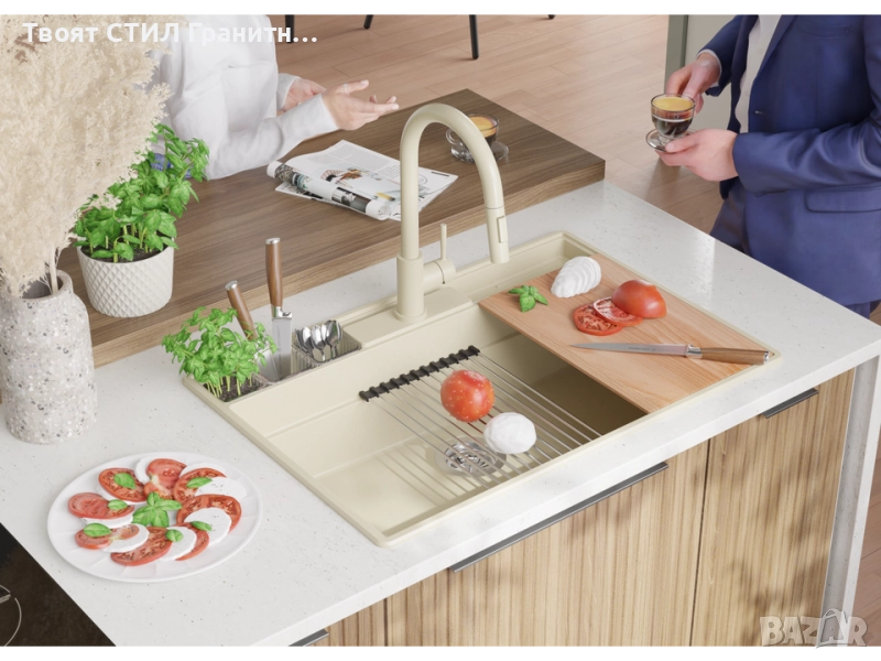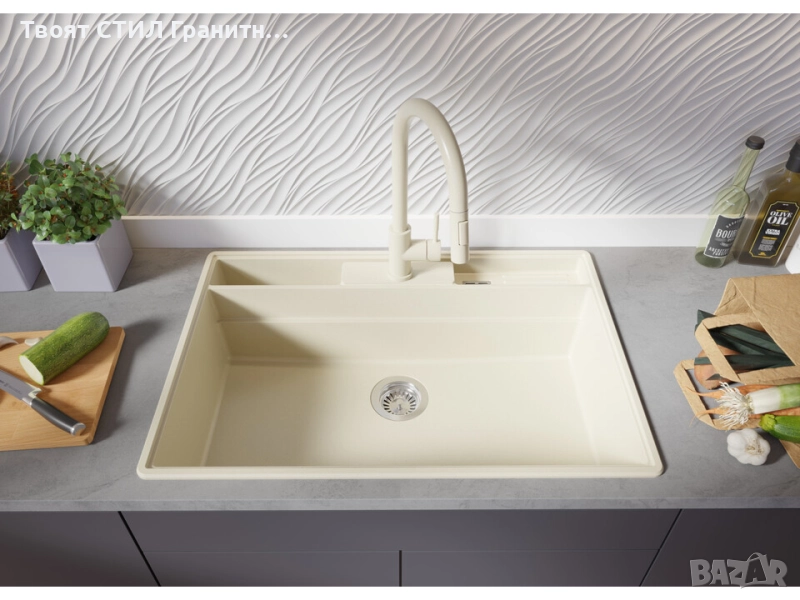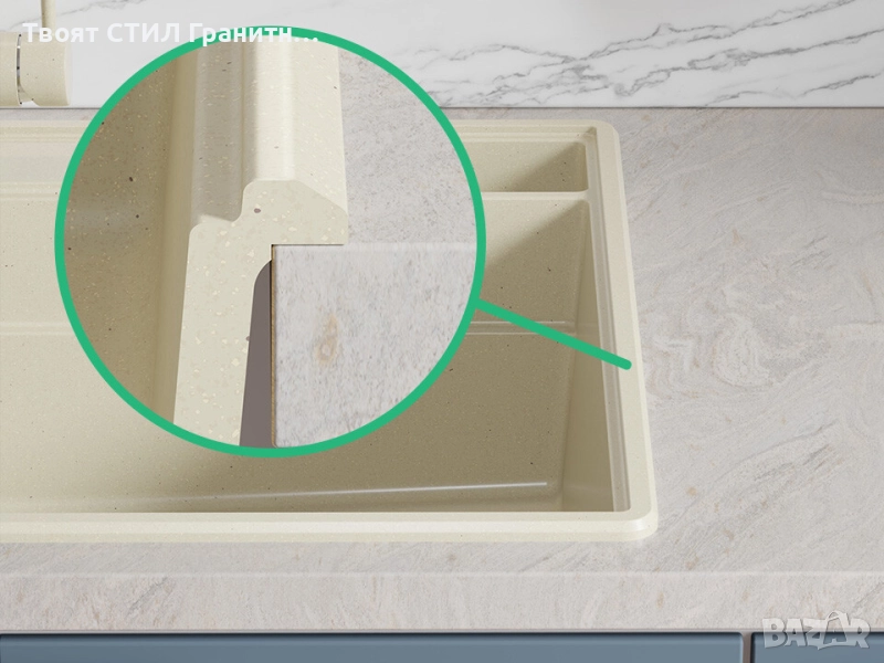 Нашите мивки са изработени от висококачествена немска смес от гранитен кварц и специална смола. Най-добрите компоненти и висококачественият производствен процес правят нашия продукт труден за обезцветяване, устойчив на надраскване и температурни промени - просто устойчив на кухненски приключения! Предоставяме 35 години гаранция на нашите мивки - най-дългата гаранция на пазара.