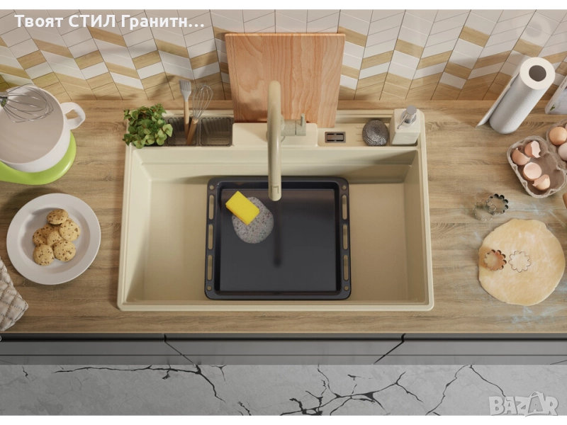 - Издръжлива конструкция от гранитен композит, устойчива на драскотини, петна и топлина
