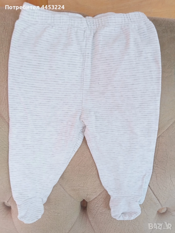 Всичките са в много добро състояние, първите четири са за 0-3мес.петия -тъмно син е за 3-6мес. шестия с динозаврите е за 9-12мес. последните два гащеризона са за 18-24мес.,че даже и за 2-3год.,всичките са по 2лв.Ританките са за възраст 0-3мес. 3-6мес. на цена по 1лв. Сините пижами са за 18-24мес, 2-3год.на цена 2лв.Пижамата със зайчетата е за момичета на възраст 4-5год. на цена 1лв.