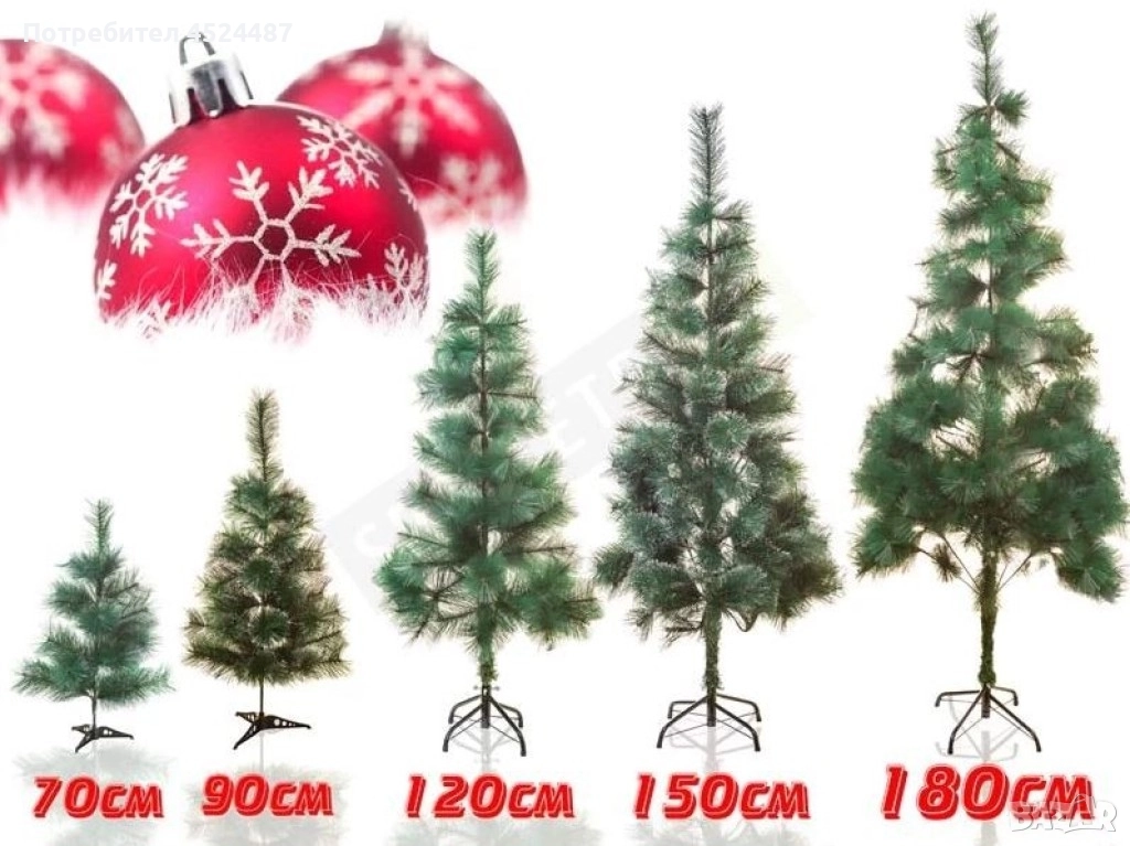 елха за многократна употреба; Материали: PVC иглички; метална конструкция и стойка; Цвят: тъмнозелен; Конструкция: секционна (при по-високите модели), гъвкави клони с телена сърцевина; Стойка: сгъваема, 4-раменна, метал; Размери: 60 / 90 / 210 / 240 см; Монтаж: без инструменти; сглобяване и разперване за минути; Поддръжка: забърсване с мека суха/леко влажна кърпа; съхранение в кутия на сухо място. 60 см - 25 лв. 90 см - 29.90 лв. 210 см - 99.90 лв. 240 см. - 125.50 лв.
