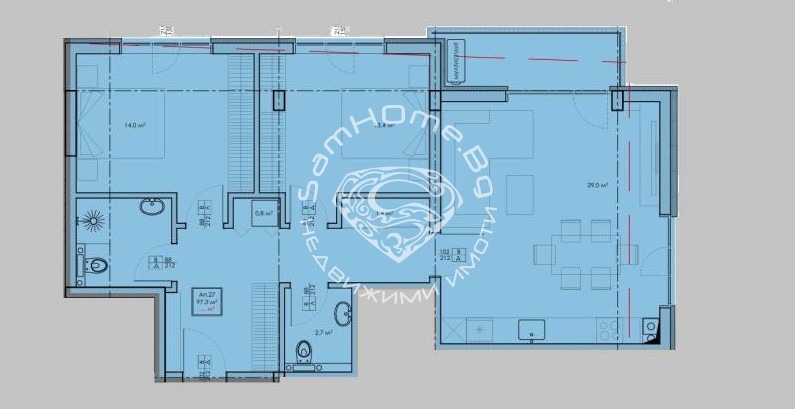 Чиста Жилищна Площ: 97кв.м.