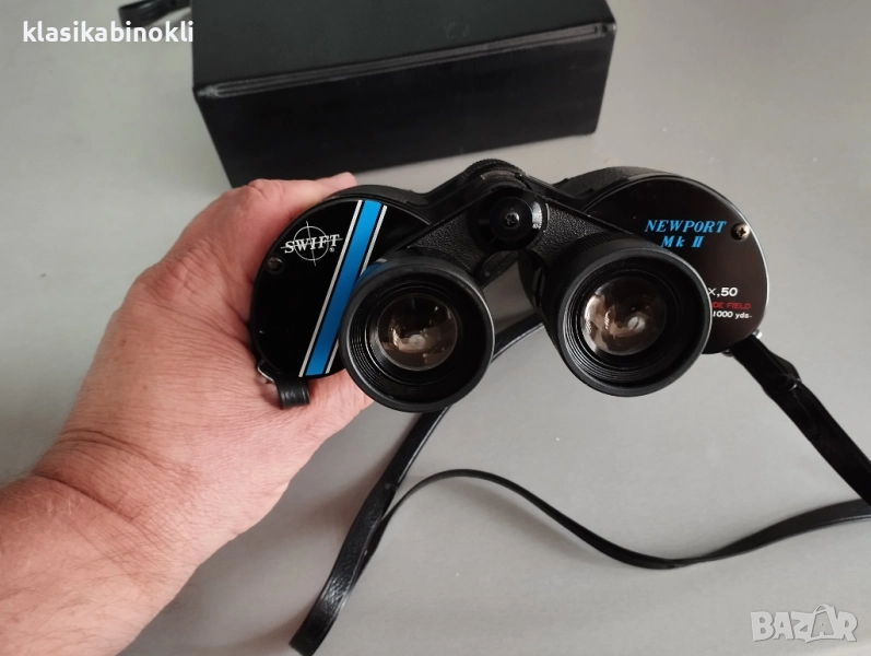Първото впечатление, което прави Нюпорт-а е неговата масивност. Това не е театрално бинокълче. Истински, голям, солиден, но удобен. Да, голям е. Окулярите са с габарити над 40 мм /по-долу на снимките/. С отлично покритие на оптичните елементи, този Суифт предоставя изключително контрастно изображение /в центъра на полето е по-контрастен от Декарем например/ . Поколението на Нюпорт е с широко зрително поле /7.9 градуса/, което е чудесно. Панорамната гледка при 10 пъти е прекрасна.