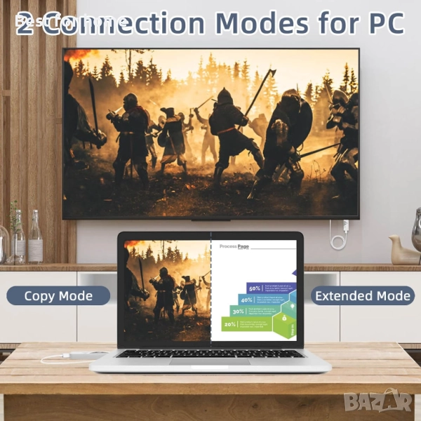 Специална функция Поддържаната резолюция е 1920 x 1080P@60Hz, може да се използва за лаптоп/PC/STB/камера към телевизор/проектор/монитор/мобилни телефони с Android Type-C, обхват на предаване до 52 метра без бариери; 2.4G/5Ghz двубандова връзка за плавно стриймване, мини безжичен HDMI, компактен и преносим, plug and play, без нужда от приложение/Wi-Fi/Bluetooth