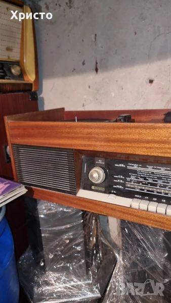 Много запазено, като се включи има шум от говорителя.В оригинален вид липсва горния капак но е поставено стъкло.
