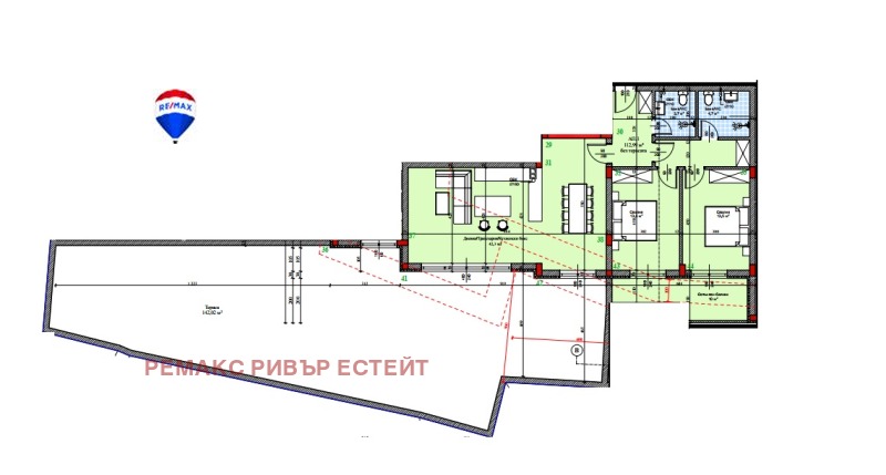 - тераса с площ 142,02 кв.м.