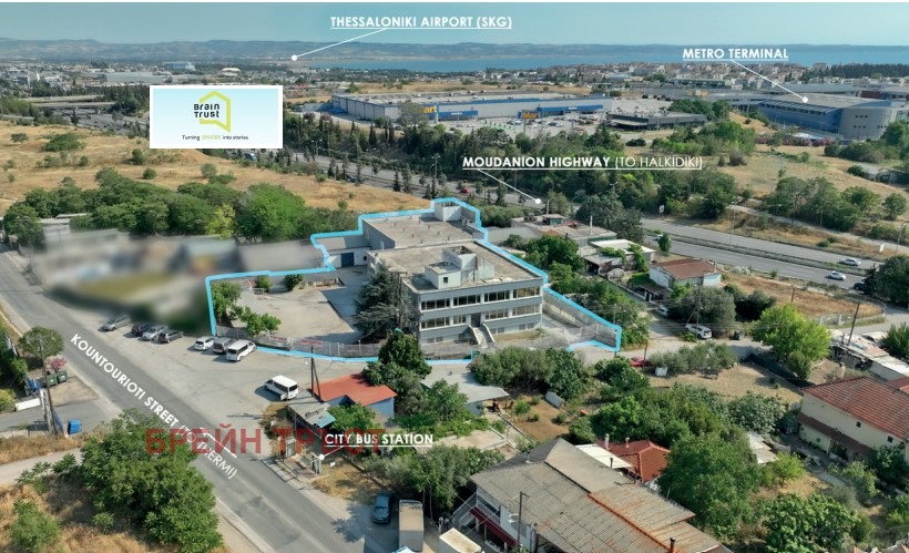Имотът се намира на 15 кв от центъра на Солун. На 15 минути от летището, на 5 минути от магистралата Муданя - Солун, на 5 минути от околовръстното на Солун.