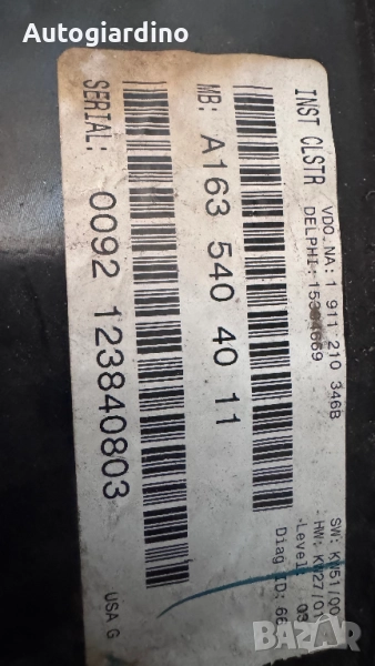 Километраж за Mercedes ML - A1635404011 / 0092123840803