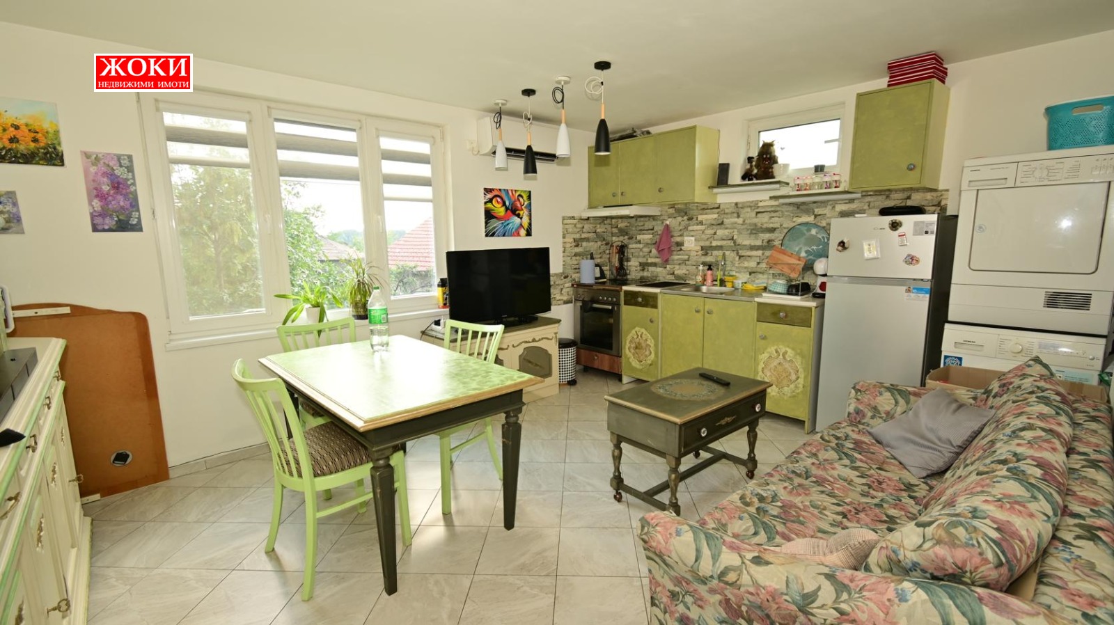 Агенция за недвижими имоти ЖОКИ предлага на своите клиенти ремонтиран и обзаведен едностаен апартамент в къща в гр. Перник, района над автогарата /кв. Каменина/, ет. 2/ от 3/, площ 45 кв. м.. Разпределение: дневна с кухня с теракот, спалня с ламиниран паркет, коридор с теракот, баня тоалетна с фаянс. Дограмата е ПВЦ с щори. Продава се с мебелите, без ел. уредите в кухнята. В цената, освен мебелите, са включени два инверторни климатика и електрически бойлер, осигуряващ топла вода в банята и кухнята. Жилището е с метална входна врата. Прилежащо избено помещение в сутерена /кота 0 / с площ от 16 кв. м.. Собственост върху 1/5 идеална част от прилежащия парцел. Къщата е на три етажа и на всеки етаж има по два едностайни апартамента. Имотът е разположен на главна улица, на около 500 м. над автогарата. тел. 0888227490