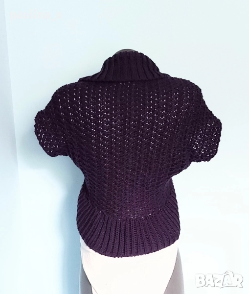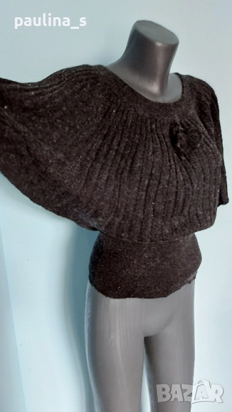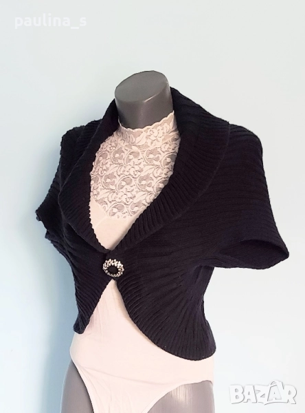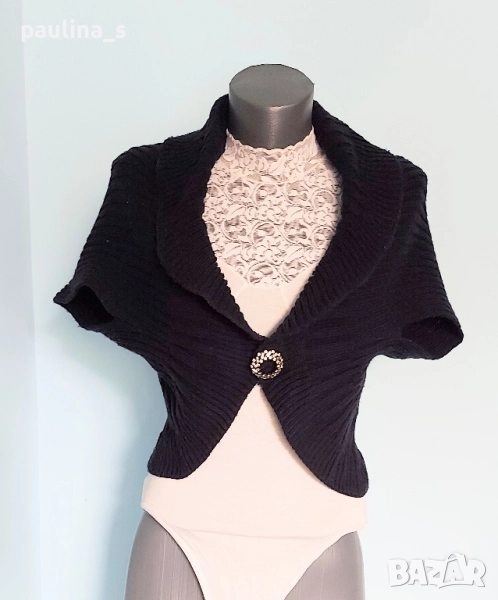 3️⃣. Колаж / S / 2XL - Винтидж! / Унисайз. Цената е крайна, без пазарлъци 29,99лв / 15 евро. Топъл италиански топ тип елек или Болеро. Преждата е вълна и полиестер, много топла, лека и с голяма еластичност, покрива няколко размера. Цветът е много тъмно сив до черен. Моделът се вижда добре, правоъгълни с по един шев за образуване на процепи за ръкавите. Унисайз. Брошката е винтидж руска с натурални кристали - цена 30 евро, при желание също се продава и ще създам отделна обява за нея.