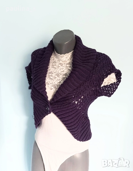 2️⃣. Колаж / S / XL - Винтидж! Унисайз Италиански Топ или елек от вълна и примеси в лилаво. Цената е крайна, без пазарлъци 19,99лв / 10 евро. Много атрактивен къс топ тип елек, със съдържание на вълна. Моделът е правоъгълник, може да послужи на плетачки по хоби, а плетката едра и рехава, дава еластичност и покрива няколко размера. Не е чисто нов, но е без дефекти.