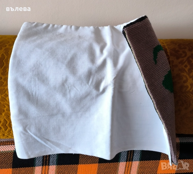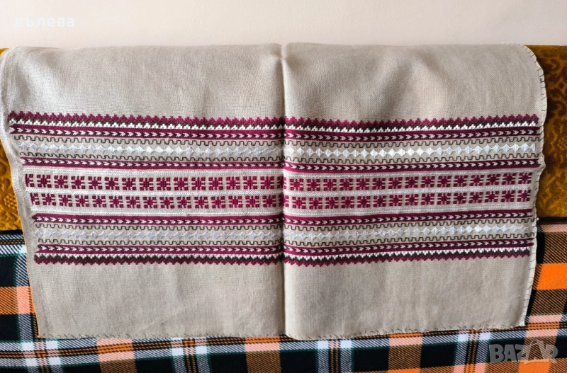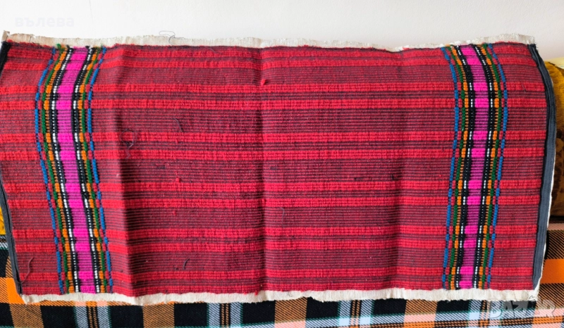 Оригинални битови възглавници.Червена вълнена, ръчно тъкана, само лице, без гръб,80/40см, цена 15 евро; малка на цветя, вълнена с гръб,44/34см, цена 15 евро;бродирани върху ленена панама само лице,70/48см., цена 20 евро за брой.