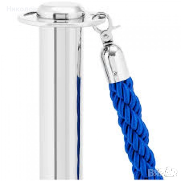 Комплект от две стабилни и елегантни сребристи метални ограничителни колчета с едно синьо въже. Въжето е със сребристи самозатварящи се куки за закачане. Стоперите могат да бъдат свързани в произволни форми. Произведени са от полирана стомана, издръжливи и лесни за почистване. С помощта на тези ограждения ще може да ограничите определена зона или да забраните достъп до нея, както и да използвате огражденията за указване на посоката в зали, ресторанти, банки, хотели, конференции и събития и други мероприятия. Дължината на въжето е 150см. Височината на колчето е 95 см. с диаметър на основата - 32 см., дъното е полимерно, не се пързаля дори и при мокър под. Тегло - 6.5 кг. Предназначени са предимно за вътрешна употреба.