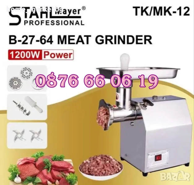 Професионална месомелачка ТК-12 1200W с 3 решетки и 2 ножа + приставка за домати → Обява 51838038