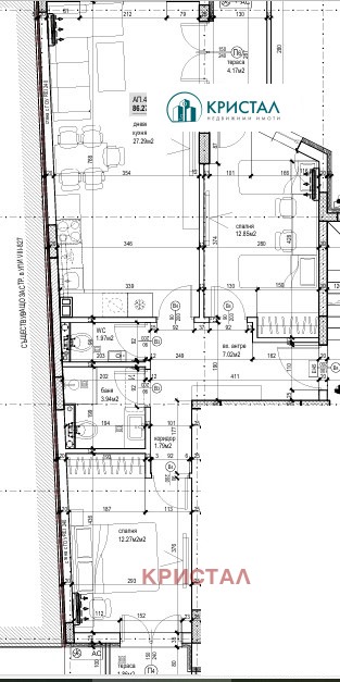 Агенция ''Кристал'' предлага за продажба 3-стаен апартамент ново строителство с АКТ 14 в малка бутикова сграда.