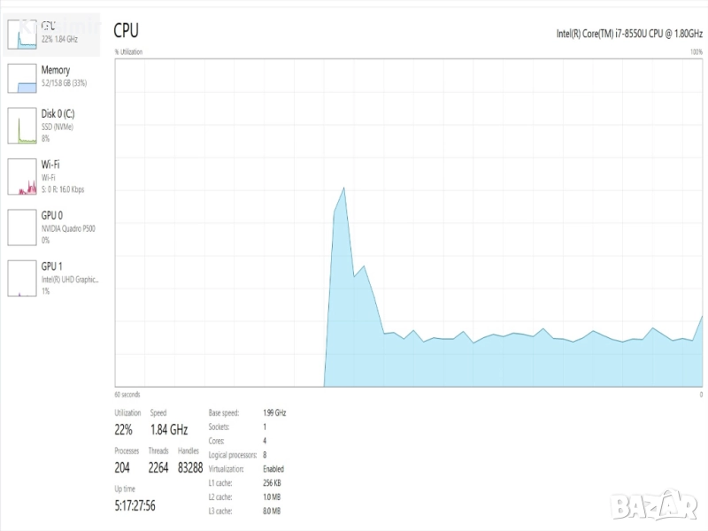 ПРОЦЕСОР Intel Core i7-8550U (4 ядра / 8 нишки, 1.8GHz – Turbo до 4.0GHz 8MB кеш)