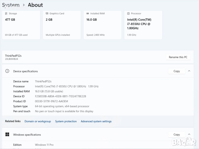 Инсталиран с лицензиран Windows 11 Pro