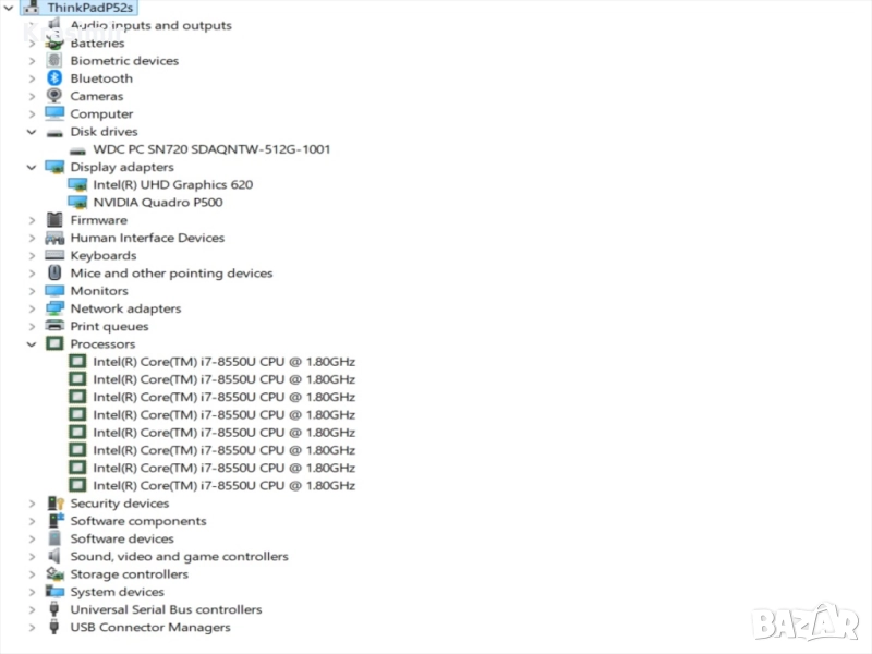 Мощен Лаптоп Lenovo Thinkpad P52s 15.6" i7-8550U/RAM16GB/SSD 512GB /NVIDIA Quadro P500 2GB DDR5