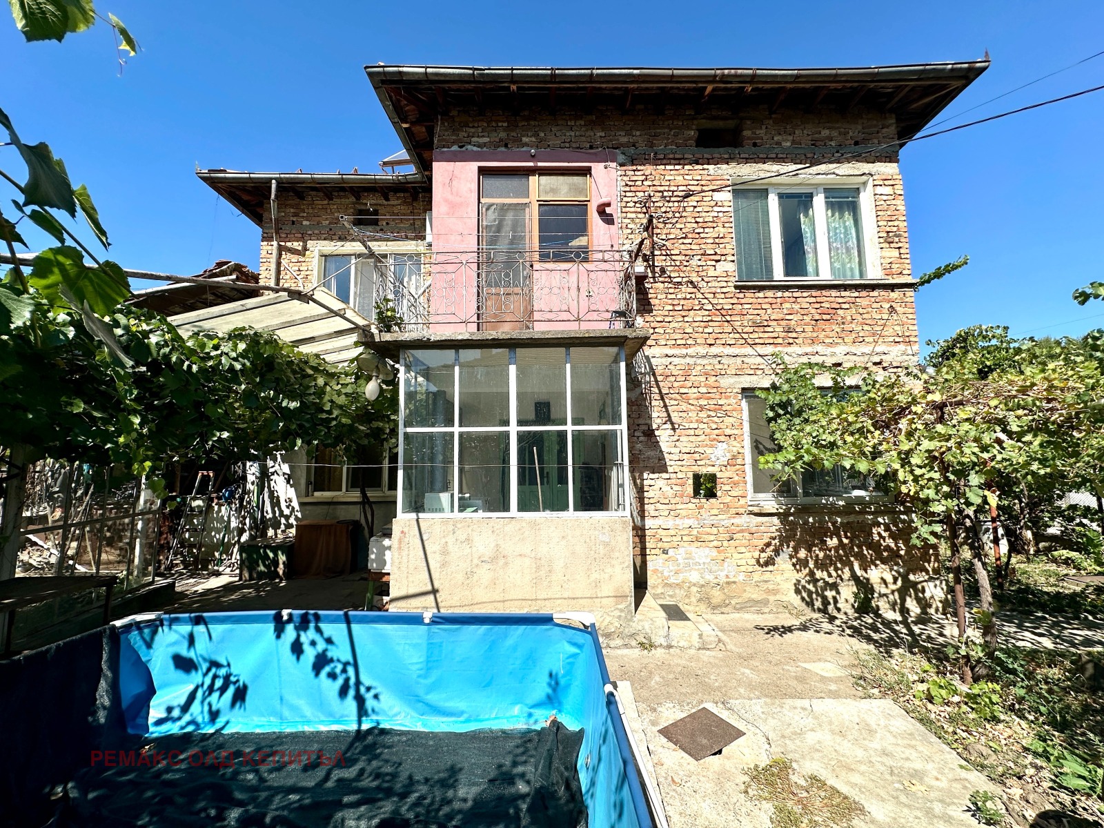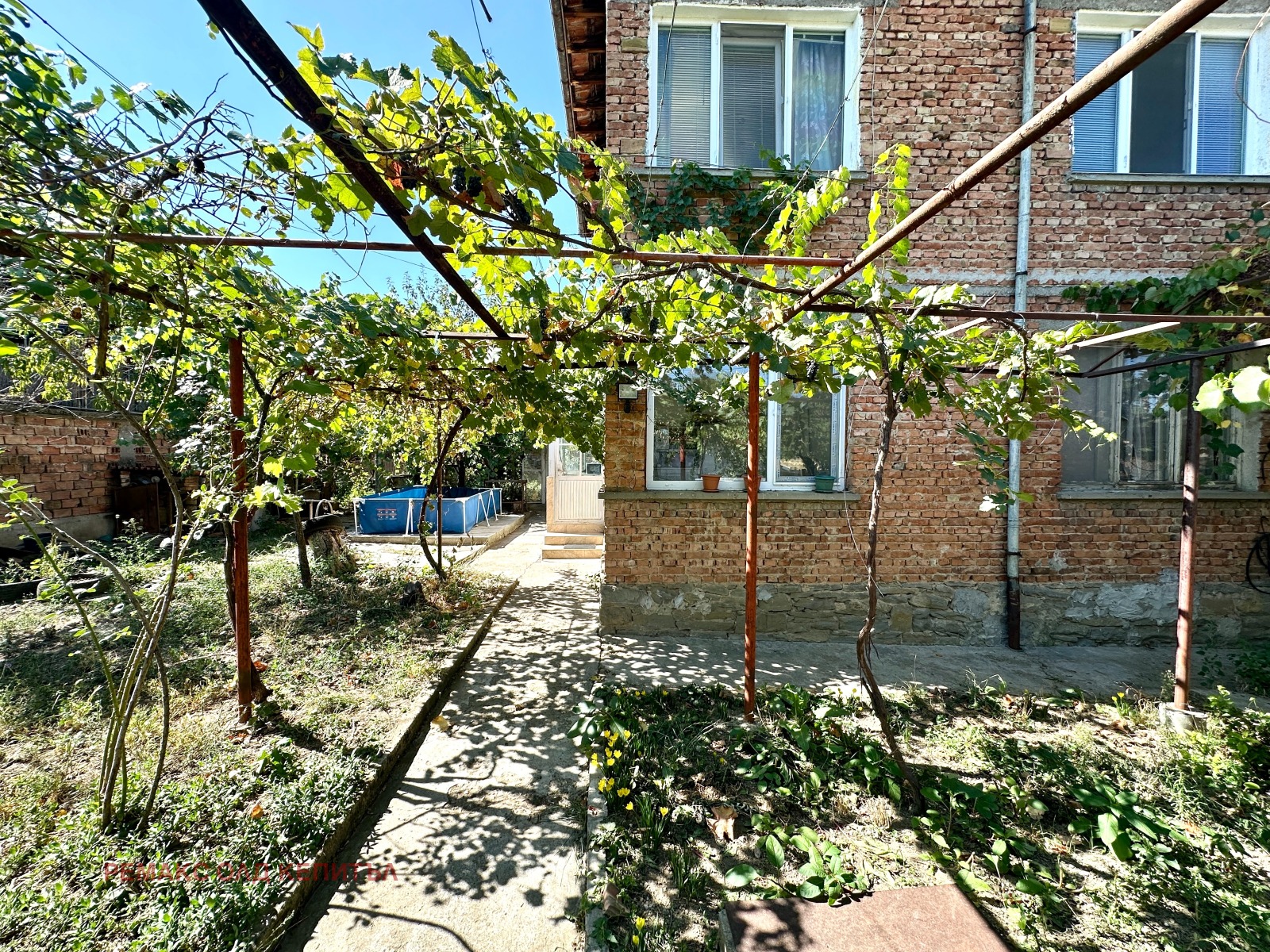 Към имота принадлежат гараж, стопанска постройка с площ 29 кв.м. и двор от 627 кв.м., равен и подходящ за градина, барбекю зона или място за отдих.
