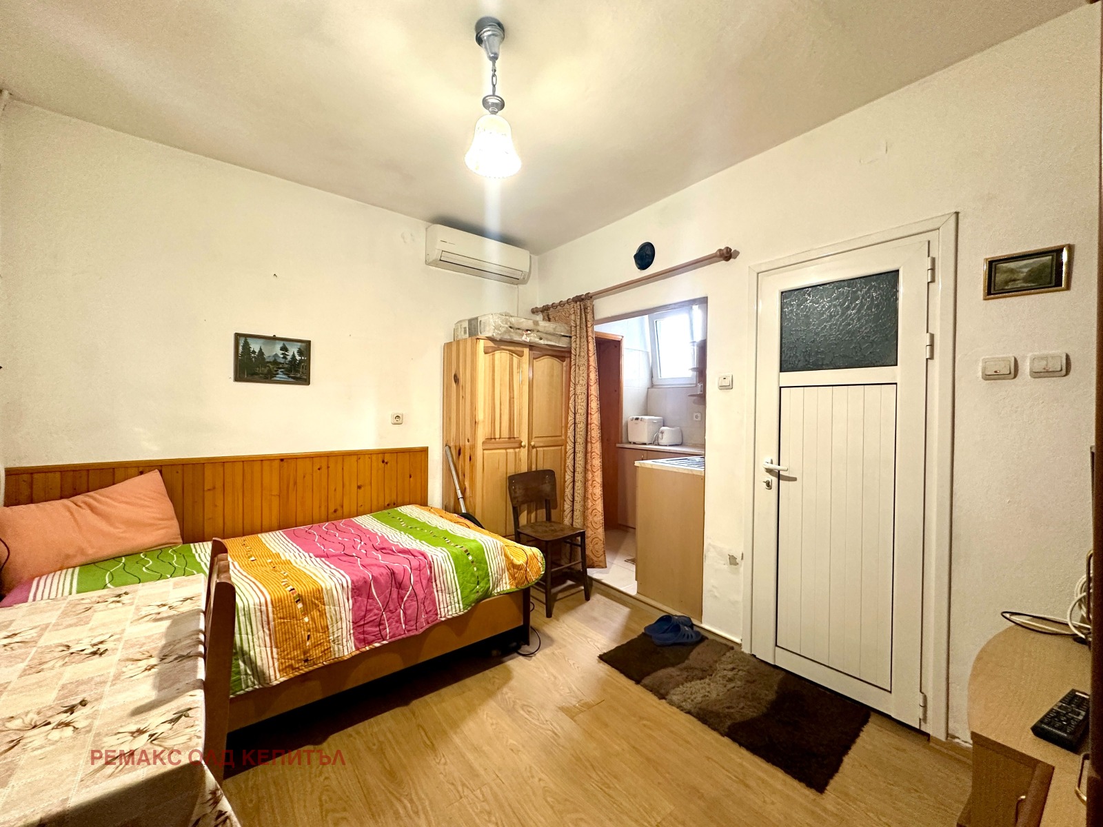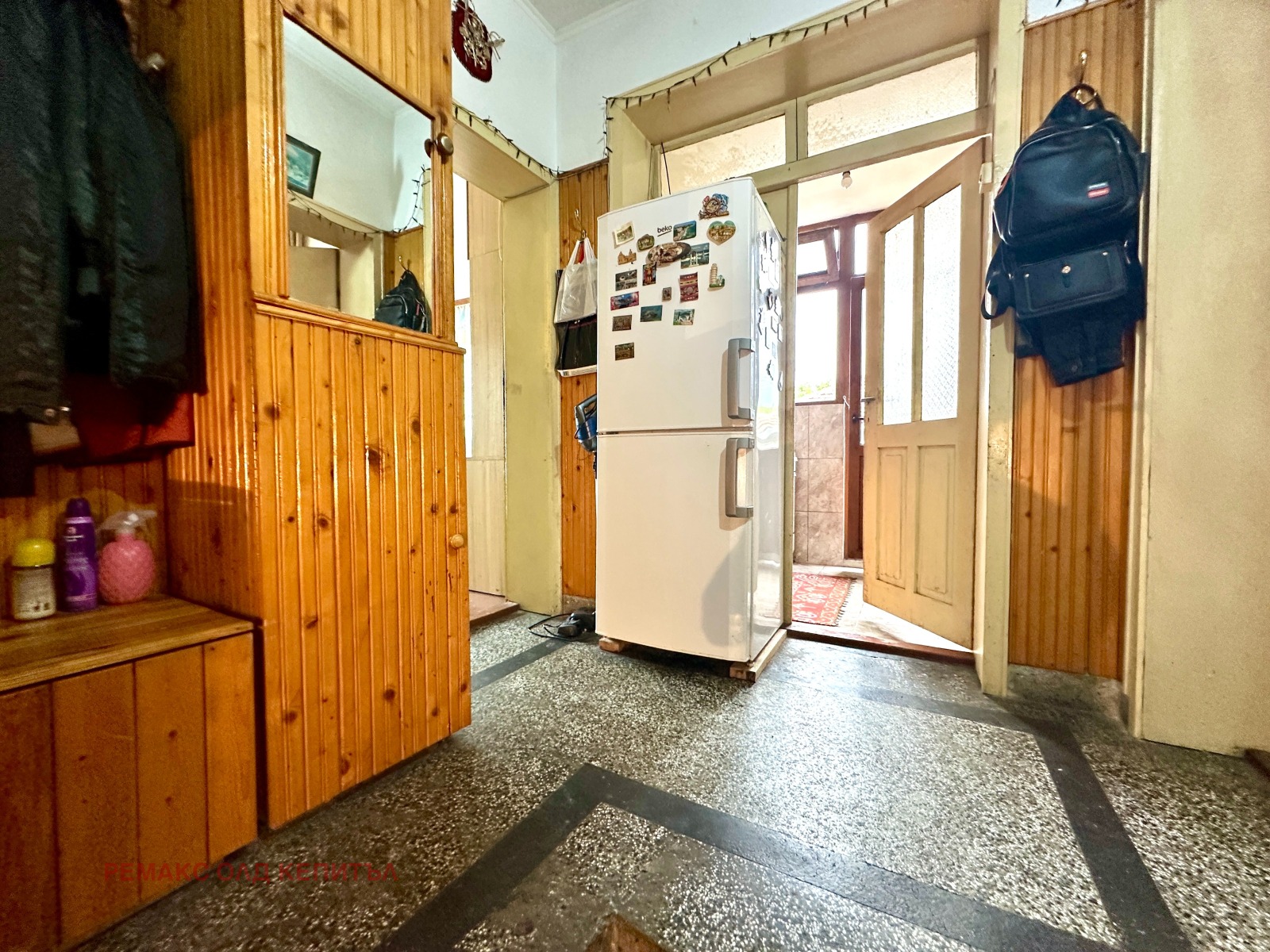 Първи етаж коридор, три стаи, баня с тоалетна и килер;