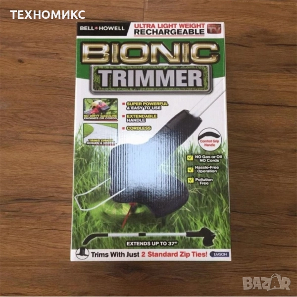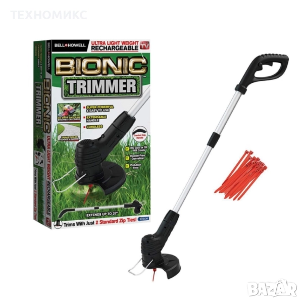 Оставете двора си да изглежда чист и подреден за нула време! Представяме ви Bionic Trimmer от Bell & Howell, революционно новия начин за обработване на трева. Няма повече да се налага да мирише на токсични изпарения, използвани от газови косачки и тримери. Bionic Trimmer е фантастичен лесен акумулаторен градинарски инструмент, който използва връзки с цип вместо линии, за да направи подстригването по-бързо и безпроблемно. Успехът на Bionic Trimmer е литиево-йонната батерия, която използва силата на конвенционалния тример и го миниатюризира в звяр за захранване на батерията, който ви дава сила на подстригване точно в ръката ви и с регулируемия стълб, който лесно се разширява и прибира, за да го направи удобно за всеки да работи. Няма да повярвате колко бързо ще можете да третирате плевелите и да подстригвате тази трева!