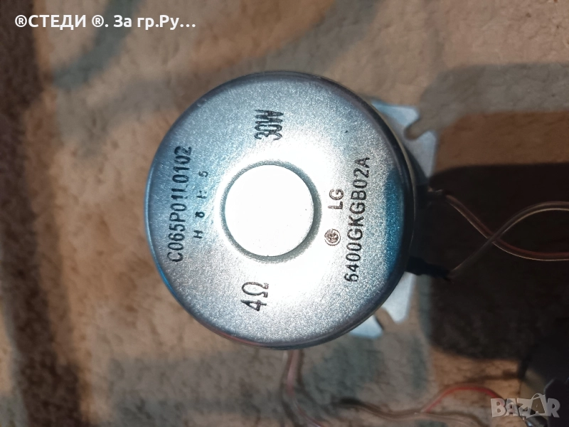 Цената е за 1 брой. Говорители LG 6400GKGB02A. Характеристиките, високоговорителя, са: Модел: C065P011.0102 Импеданс: 4Ω (4 ома) Мощност: 30W (30 вата) Производител: LG Каталожен номер: 6400GKGB02A.
