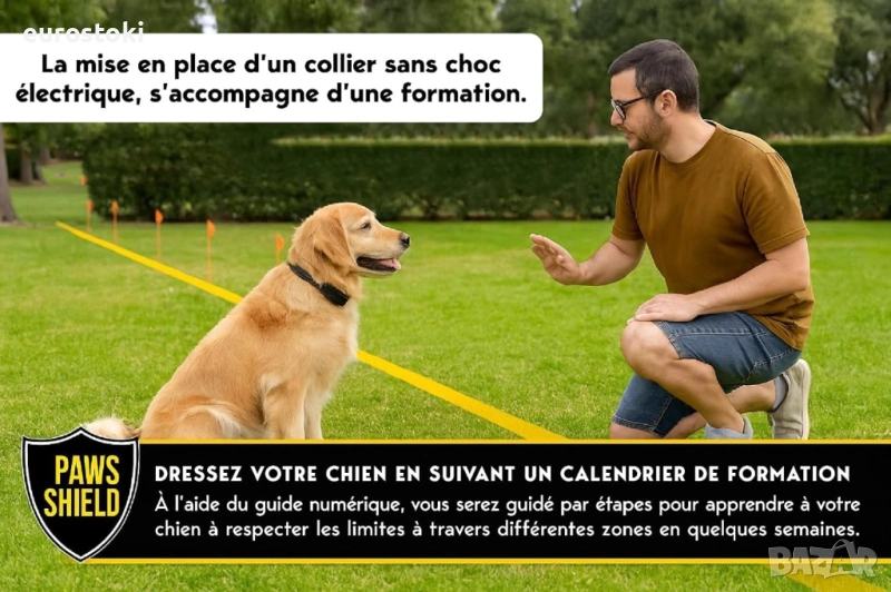 Този комплект за ограда против бягство на кучета включва 1 нашийник за обучение на кучета с дистанционно управление, 1 контролна кутия, 150 м тел за електрическа ограда, фиксиращи колове и подробни инструкции за бърз монтаж. Вече възприето от много собственици, това решение за обучение е идеално за невидима и ефективна бариера.
